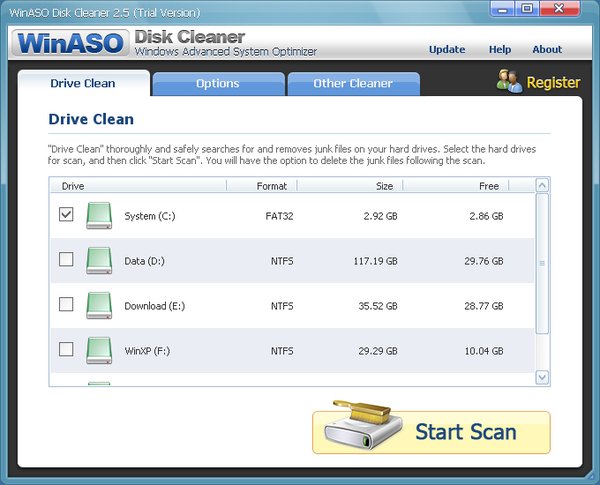 WinASO Disk Cleaner 是一款文件小、运行速度快、不需繁复的操作,就可以很快速的为我们的计算机做磁盘清理的工作。不管是系统缓存盘、网页缓存盘、上网记录、 Cookies…… 等,它都可以帮你做清除的动作,而且还会列出计算机上,可供删除有哪些、占用了多少硬盘空间以及有多少个档。经本程序清除之后,将大幅释放您的硬盘空间。