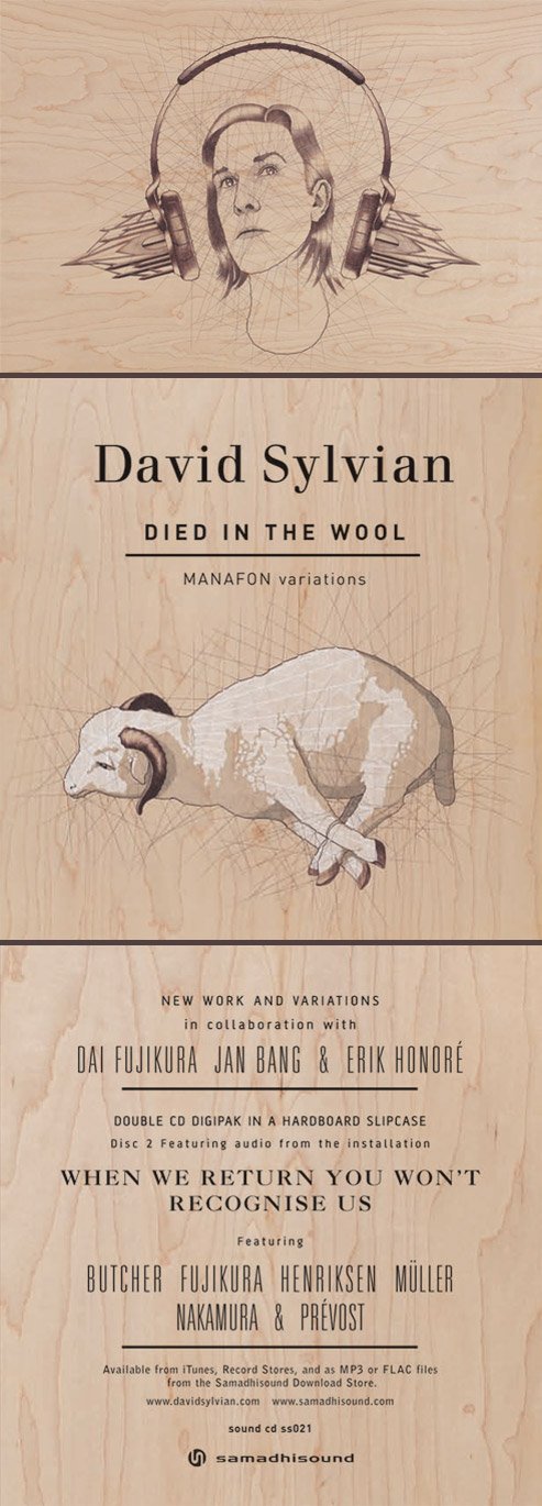 Died in the Wool (MANAFON Variations) re-employs these players (with some new ones) in the considerable reworking of five of MANAFON's compositions. There are also six new songs that include unused outtakes, and two poems by Emily Dickinson set to music and sung by Sylvian.