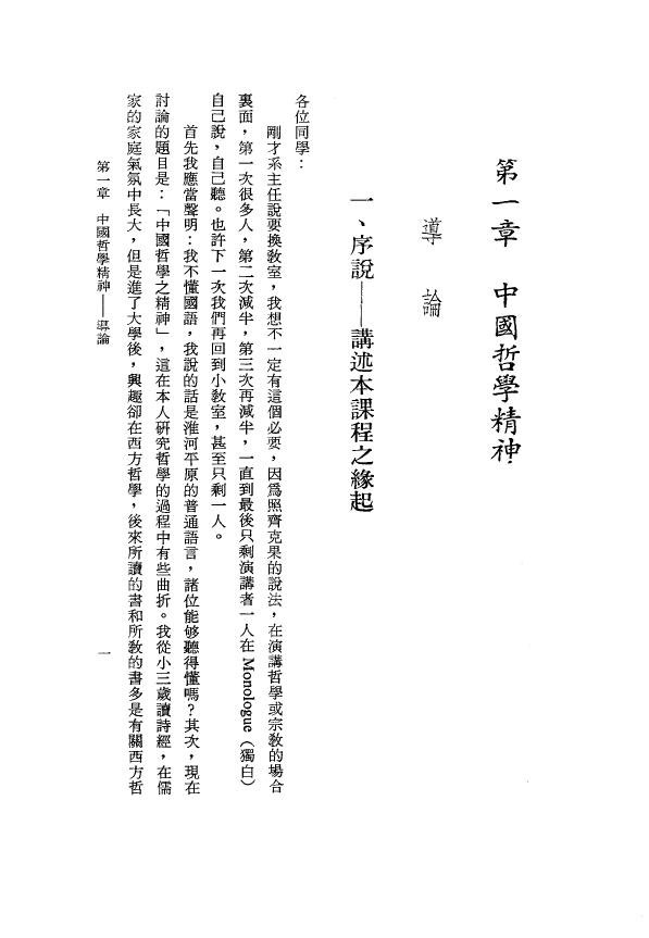 : 目录 第一章 中国哲学精神——导论 第二章 原始儒家思想——尚书部分 第三章 原始儒家思想——易经部分 第四章 原始道家哲学——老子部分 第五章 原始道家哲学——庄子部分