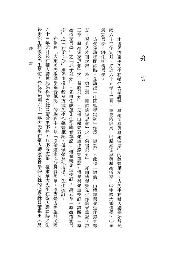 本书系方东美先生在辅仁大学教授《原始儒家与原始道家》的录音笔记。方东美先生在辅仁大学讲学始于民国六十二年九月,终于六十五年十二月,主要内容为:(一)原始儒家与原始道家,(二)中国大乘佛学,(三)华严宗哲学,(四)宋明清哲学。