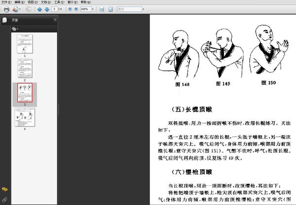 武术,打拳和使用兵器的技术,是中国传统的体育项目,武术又称国术或武艺,中国传统体育项目,其内容是把踢、打、摔、拿、跌、击、劈、刺等动作按照一定规律组成徒手的和器械的各种攻防格斗功夫、套路和单势练习,武术具有极其广泛的群众基础,是中国人民在长期的社会实践中不断积累和丰富起来的一项宝贵的文化遗产,是中国民族的优秀文化遗产之一,少林是汉族武术中体系最庞大的门派,武功套路高达七百种以上,又因以禅入武,习武修禅,又有“武术禅”之称,银喉功是专练喉部的硬功功夫,此功练成后,喉部可以承受千斤之力,可表演银枪刺喉、喉部断筷子等。