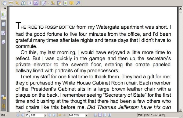 本书的作者是世界上最受尊敬的女性之一,内容是有关于她担任美国政府国家安全顾问和国务卿的八年时间里的那些引人入胜的故事。作为美国的外交总管,赖斯几乎不停地穿梭于世界各地,为不共戴天的仇敌找到共同点,为解决棘手的难题制定协议。她取得了了不起的成就。