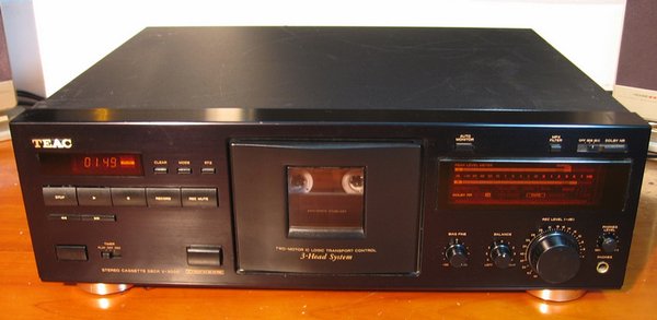 TEAC三磁头录音座V3000,发烧入门卡座。带录音手动磁带偏磁调整,输出端子镀金,内部结构完善,音频放大,电机电源和机芯各自独立用金属隔离,用料方面,主电容和小电容都大量使用金字发烧电容,音频电路用靓声的AB碳阻。磁头高硬没磨损,外观大气漂亮,音质方面音场稳定,高低音域伸展佳,用发烧CD进行录音试听,即时转换监听难分辨。