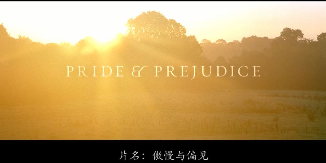 《傲慢与偏见》,片名浮现在清晨的村庄。