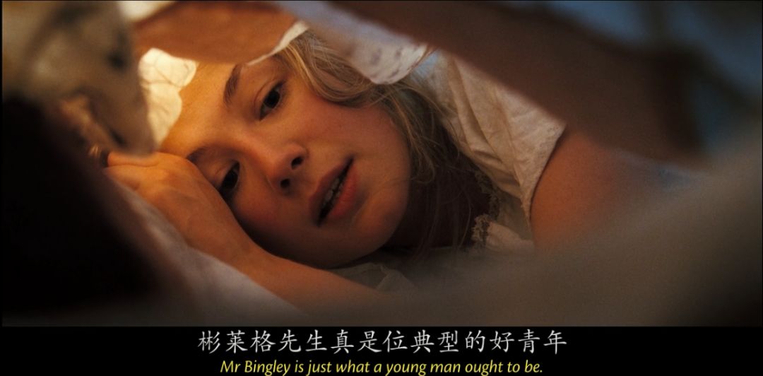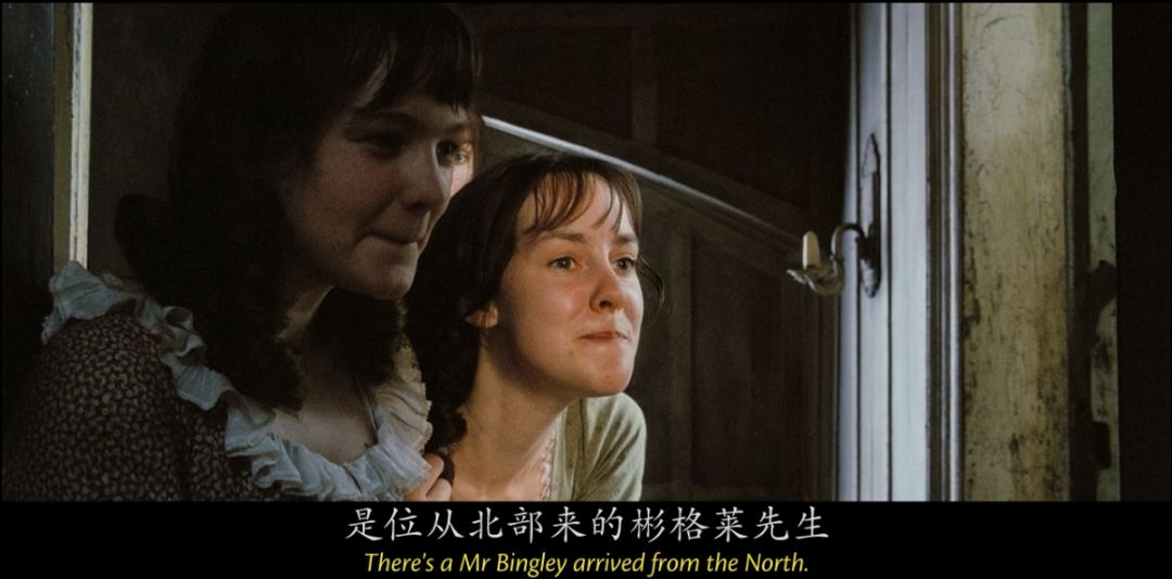 比如随宾格利拜访班纳特家,进门时偷瞟的小眼神对着的正是伊丽莎白的位置。