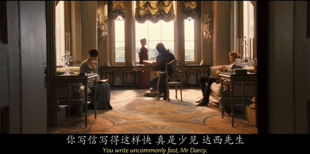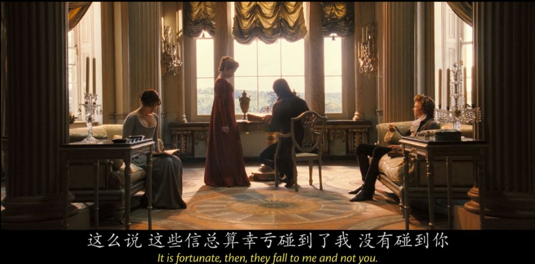 这也恰巧符合简奥斯汀一个鲜明的写作特色:用间接引语巧妙地过渡,不知不觉中完成对观众的情感引导(观众在无意识中充当了一次伊丽莎白)。