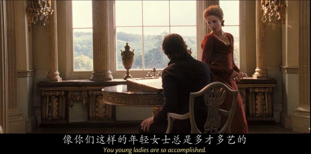 在伊丽莎白的眼中,达西才向观众展现了真容。导演巧妙地牵起了两人的关系。