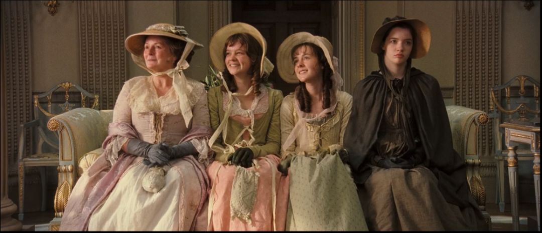 伊丽莎白的姐姐简,两个活泼的妹妹莉迪亚和吉蒂,远处弹钢琴的是玛丽。