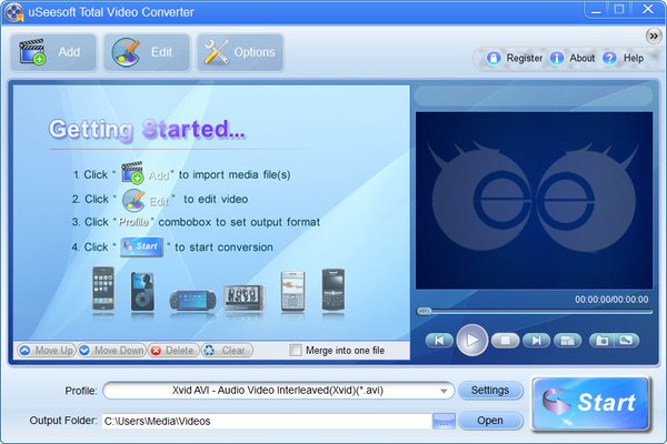 uSeesoft Total Video Converter is an expertise converting between popular video formats like AVI to MP4, Youtube video (FLV) to MP4, MOV to AVI, Youtube video (FLV) to AVI, MKV to H.264, ASF to WMV, etc. You are ensured good quality by the high technique of uSeesoft Total Video Converter.