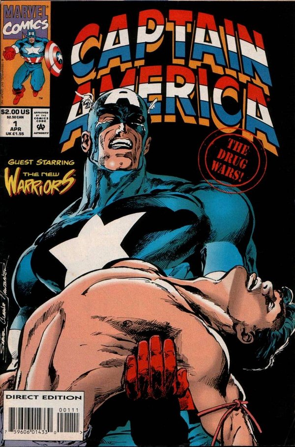 This nefarious experiment begins with a talented high school baseball pitcher named Mitch. Constantly stressed by the pressure of having to perform in big games, Mitch is easy prey to an alien disguised as a drug pusher. During a game, the drug-addled Mitch beans one of the batters with a fastball and then runs off in shame. Fortunately, Captain America is on the scene to help out and gives Mitch a good talking to about the dangers of drugs. The dialogue, written by Peter David, is actually a lot less preachy than it could have been.