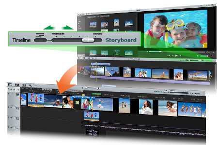 更精确的编辑,简单地切换到时间轴模式的Storyboard。在时间轴模式中,你获得额外的编辑工具,多种视频,音频,和标题曲目,以及标记和章设置。