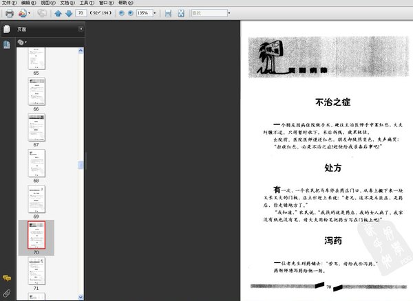 1分钟笑比10分钟跑步更能锻炼人,《黄帝内经》指出:“喜则气和志达,荣卫通利”,这说明保持乐观的精神可以使气血通畅,活力充沛,进而更加有益于身心健康,笑是人类生理和心理的需要,它是一种与生俱来的、特殊的运动方式,对我们的机体来说它也是最佳的体操,笑是呼吸器官、胸腔、腹部、内脏、肌肉等器官相互配合、相互协调的运动,不是幸福的入住笑,而是笑的人幸福大笑,笑舒身心、防百病的自然健康疗法,本书所收录的笑话内容均为医疗、疾病方面的笑话,包括“开刀”、“红鼻子”、“诊断”、“避免受凉”、“治夜游症”、“奇怪的病”等。