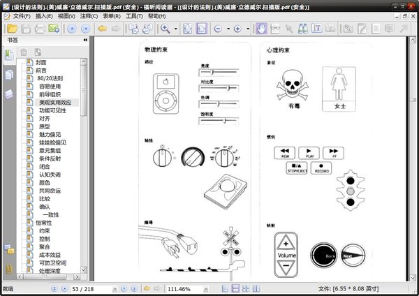 本书按照英文字母顺序编排,因此读者可以根据法则名称迅速找到参考法则。如果你专门对某一设计问题感兴趣,本书也按照设计师常见的问题类别来编排(见P8)。每项法则都是两页对照的形式。左页包括法则简短的定义、进一步的描述、范例,以及法则使用的指导方针。注解列在文本的右侧,提供细节与参考资料。右页包括图例与相关图解,使读者对法则有更直观的进一步了解。