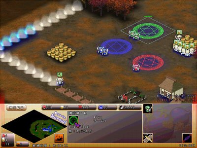 3、素材足够后即可以建造相关的建筑(造建筑也需妖精来完成),同时也可以造兵种单位,可以造小妖精来增加采集效率,也可以造英雄(即灵梦、魔理沙等原著东方角色)来作战