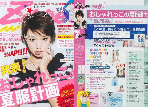 《Zipper》时尚杂志,其风格就像青苹果,有一点点酸,有一点点甜...... 心自在逍遥,个性随意的休闲装让很多女孩喜爱!其贴近日常生活的作风,深受简约风格读者喜爱!