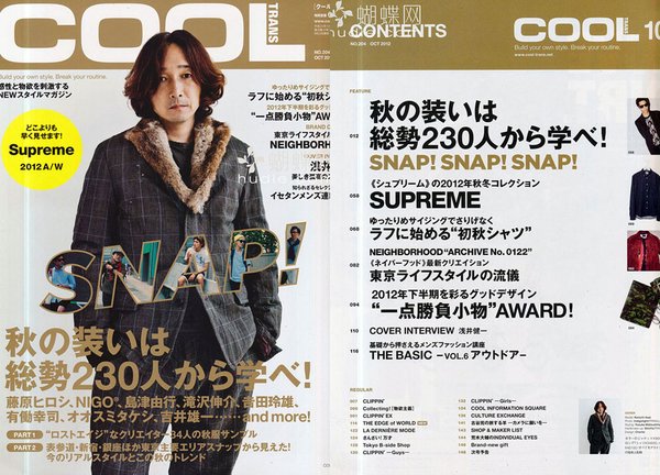 杂志介绍Cooltrans》这是一个男生也注重穿衣打扮的时代,想要向日本超时髦男生看齐的你,当然不能错过日本的最新流行情报。 Cooltrans中网罗了时下最具人气的品牌新品,包括球鞋、衣服、包包小物等,除了让你洞悉目前的穿着潮流,还要以搭配范本和日本街头流行搜寻的方式,让你更了解如何为自己作造型。喜欢那种嘻哈风味,酷酷又十男人味! 研习社会定期收集整理网络上已有的和时尚相关的杂志期刊并对其进行页面修复和颜色校对,每月更新约百本!同时我们也提供杂志下载在线杂志,尽最大的努力把好的时尚杂志资源分享给你!