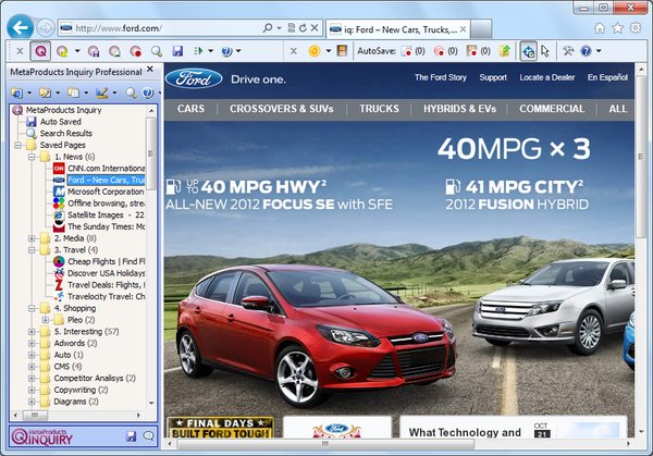 MetaProducts Inquiry makes Internet research a snap! Collect, organize and view information from the Web on your terms, quickly and easily. A Windows application, it is fully integrated with Microsoft Internet Explorer and is also available as a standalone application.