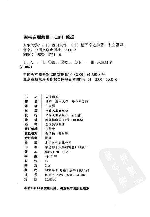 人生问答 日 池田大作 松下幸之助扫描版[PDF]