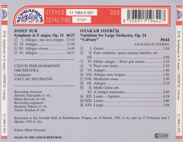 专辑英文名: Josef Suk:Symphony in E Major/Ostrčil:Varations for "Calvary"