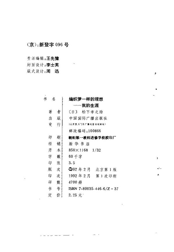 《编织梦一样的理想——我的生涯》是世界著名实业家,日本松下电气产业公司的创办人松下幸之助先生的自传。该书记述了几十年来松下电器事业如何在世界性经济萧条等困境中成为一流企业。这更是一部饱含生活哲理的智慧书。   经营的最终目的不是利益,而只是将寄托在我们肩上的大众的希望通过数字表现出来,完成我们对社会的义务。企业的责任是:把大众需要的东西,变得像自来水一样便宜。                                                              ——松下幸之助