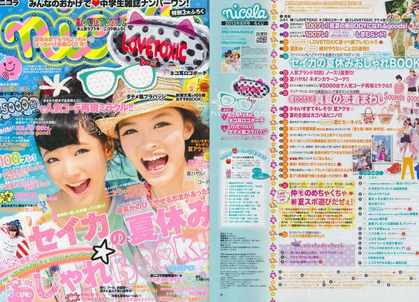 《Nicola》时尚杂志专为正值发育期的中小学女生所推出的流行杂志!有别于大人们成熟性感的时尚打扮,年轻肤质极佳的少女们也有适合的流行服饰及澹色彩妆,让平日上下课正常的穿着制服装扮以外的课馀时间及休閒假日,可以学习搭配服饰品味与甜美彩妆与家人、朋友们快乐出游!