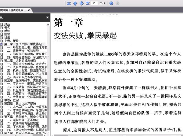 : 序 上卷:新政 第一章、 变法失败,拳民暴起 一、哗啦啦去上书,轰隆隆搞变法 二、维新变法,说垮就垮 三、你有你的格林炮,我有我的红灯照 四、慈禧仓皇西逃,帝国威风扫地 第二章、 迟到的清末新政 一、国难当头家难当,老太后也来搞新政 二、废科举波澜不惊,新教育放之海内 三、机构大调整,晚清走向近代化 四、财政问题难解决,兴办实业是根本 五、清末新政是本难念的经 第三章、 强国先强军,袁世凯横空出世 一、不堪一击,旧军队寿终正寝 二、二次转型,新陆军呼之欲出 三、乱世奸雄,袁老四如鱼得水 四、练军有方,世凯兄是有两手 五、大展拳脚,北洋军初露峥嵘 中卷:立宪 第四章、 五大臣出洋取经 一、未出国门先挨炸,考察宪政很尴尬 二、考察团漂洋出海,各国见闻不一般 三、考察归来写总结,再上奏折求立宪 第五章、 明争暗斗,预备立宪遥遥有期 一、廷前相争,互不相让 二、责任内阁背后的较量 三、丁末政潮:不是你死,就是我活 四、《钦定宪法大纲》与预备立宪路线图 第六章、 立宪还是革命,这是个问题 一、立宪派与立宪缓行派的争论 二、革命思潮风云激荡 三、孙中山和早期革命派活动 下卷:革命 第七章、 慈禧太后归去,摄政王载沣上台 一、迷雾重重的光绪和慈禧太后之死 二、小宣统三岁登基,载沣当上摄政王 三、摄政王上任三把火,妙招还是昏招 第八章、 宪政迷局与绝望的革命 一、谘议局与资政院 二、革命党屡战屡败,屡败屡战 三、暗杀风潮,一种绝望的革命 四、宪政的末路:国会大请愿与皇族内阁 第九章、 漫天烽火,革命!革命! 一、保路运动不太平 二、武昌楼上风云起 三、袁世凯再度出山 四、分崩离析半边天 尾声:迟到的《十九信条》与清帝退位 参考书目 附录一、1900年后的晚清大事记 附录二、晚清政局主要出场人物简介 后记