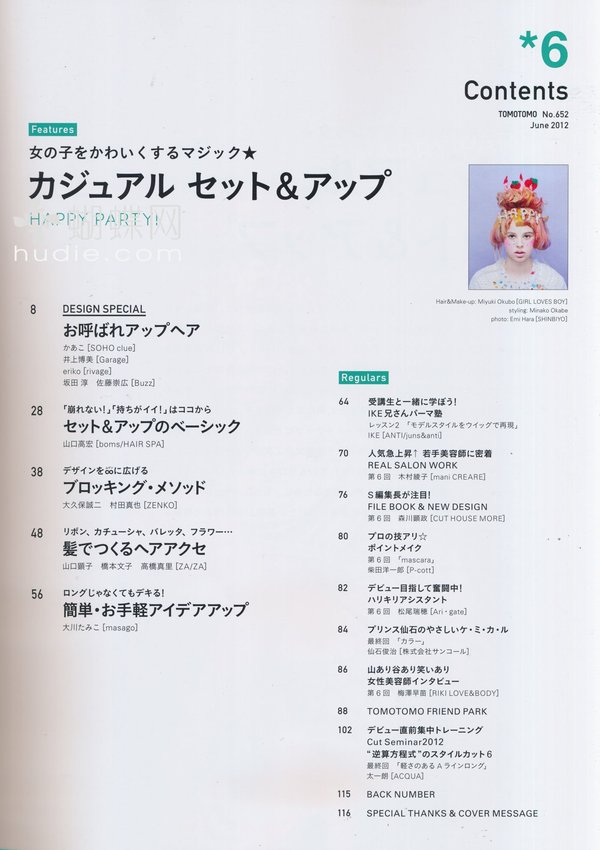 TOMOTOMO是一本专业的发型杂志,和一般随处可见的发型企划不同,重点并不在於到底提供了几百种造型范本,而是着重在造型的技巧教学和示范,以及各种可以启发型师创意的前卫设计。每一期都会以时下最流行的发型话题为主题,例如层次剪发变化、日式发型设计、可爱风发提案等等,实际的操作步骤也以图文详细说明。
