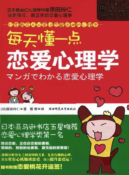 本书是“每天懂一点”书系第五弹,完美延续了“不喜欢阅读文字的,可以直接看漫画”的轻悦读风格,在心理学领域中,“恋爱心理学”作为一个新兴的学科知名度还很低,不过在人生之中又有什么比“恋爱”更牵动人的心弦、更能制造出不可思议的心理效应呢,本书细致入微地剖析了恋爱时男女复杂又有趣的心理,并介绍了最科学的恋爱技巧,读者掌握了恋爱心理学的知识,就可以使自己的“恋爱之路”更顺畅。