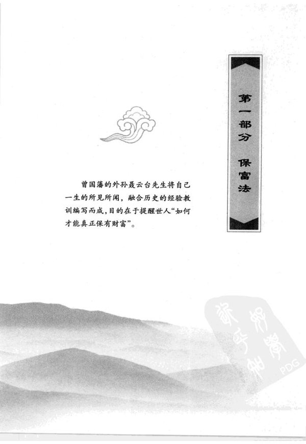 本书第一部分是聂云台先生在一九四二、三年写的,聂云台先生是清代名臣曾国藩的外孙,旧上海首任商会会长,他将自己一生的所见所闻,融合历史的经验教训,编成这本震撼人心的好书,目的在提醒世人“如何才能真正地保有财富”;避免重蹈贪财者的覆辙。