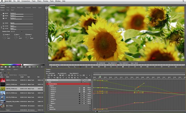 Boris RED 5 is available for Adobe Premiere Pro and After Effects CS5.5, CS5, and CS4 for Windows, Premiere Pro and After Effects CS4 for Mac, Apple Final Cut Pro (v6 through v7), Avid Media Composer (v4 through v5.5 on Windows and Mac), Grass Valley EDIUS 6, Sony Vegas Pro 10, and Media 100 Suite. Free forthcoming software updates will add support for Premiere Pro and After Effects CS5.5 / CS5 for Mac.