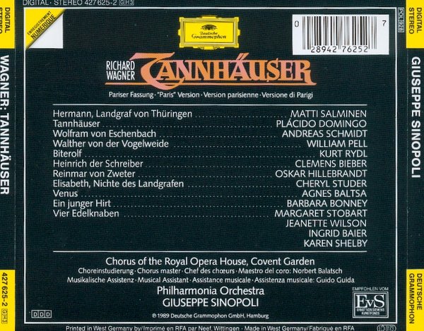 由于电驴上只有SOLTI那版的,所以买了套DG西诺波里1989年版(巴黎版)的对照着听,希望大家喜欢,呵呵