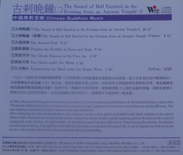 专辑英文名: The Sound of Bell Emitted in the Evening from an Ancient Temple Ⅱ