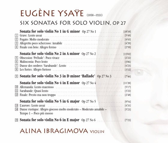 : 01. Grave: Lento Assai 02. Fugato: Molto Moderato 03. Allegretto Poco Scherzoso: Amabile 04. Finale Con Brio: Allegro Fermo 05. Obsession, 'Prelude': Poco Vivace 06. Malinconia: Poco Lento 07. Danse Des Ombres, 'Sarabande': Lento 08. Les Furies: Allegro Furioso 09. Sonata For Solo Violin #3 10. Allemanda: Lento Maestoso 11. Sarabande: Quasi Lento 12. Finale: Presto Ma Non Troppo 13. L'Aurore: Lento Assai 14. Danse Rustique: Allegro Giocoso Molto Moderato 15. Sonata For Solo Violin #6