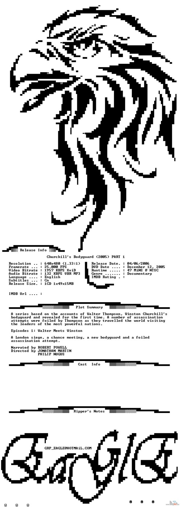 ◆ 中 文 名:丘吉尔的保镖 (Part 1~13) ◆ 原 片 名:Churchill's Bodyguard ◆ 出品公司:BBC ◆ 出品年代:2005 ◆ 国  家:UK ◆ 类  别:记录片 (Documentary)         ◆ 文件格式:XviD + MP3 ◆ 文件大小:13CD 13x47x15MB ◆ 视频尺寸:640 x 480 ◆ 影片长度:13 x 47 Mins @ PAL ◆ 对白语言:英语 ◆ 字幕语言:外挂中文 ◆ 内容简介:   从1921年至1945年,英国警察沃尔特·汤普森曾长期担任被称为“斗牛犬"的英国前首相邱吉尔的贴身保镖。据英国《泰晤士报》报道,汤普森在二战结束时写就的回忆录在尘封60年之后于本月初面世。回忆录为人们了解邱吉尔这个伟人的力量与缺陷提供了独一无二的机会。本纪录片《丘吉尔的保镖》是根据这部回忆录为依据拍摄的,这本长达36万字的回忆录在英国萨默塞特一个农场小屋的阁楼上尘封了多年,直到不久前,才被汤普森的侄孙女琳达·斯托克发现。   这是一部关于20世纪政治风云的密谈,这并不是一部关于丘吉尔生平的记录片,而是一部关于20世纪政治风云巨变的系列记录片,影片以丘吉尔的身边秘密保镖的揭密,他曾随同丘吉尔一同会见斯大林和罗斯福,并差点遭到爱尔兰共和军的杀害,全长676分钟的影片,足够帮助你从一个角度来了解20世纪的政治风云了.本片已翔实的历史文献,珍贵的历史影像资料,带给大家一个关于20世纪政局风云变幻的世界,告诉我们许多鲜为人知的内幕。 第 一 集:初识温斯顿 第 二 集:劳伦斯与沃特联手扭转乾坤 第 三 集:纽约惊魂 第 四 集:印度民族主义者的暗杀 第 五 集:纳粹狙击手计划 第 六 集:危险之旅 第 七 集:大轰炸 第 八 集:偷袭水上飞机码头 第 九 集:文斯顿的替身 第 十 集:德黑兰自杀性袭击 第十一集:人工呼吸 第十二集:下水道炸弹 第十三集:爱他至死 ◆ NFO