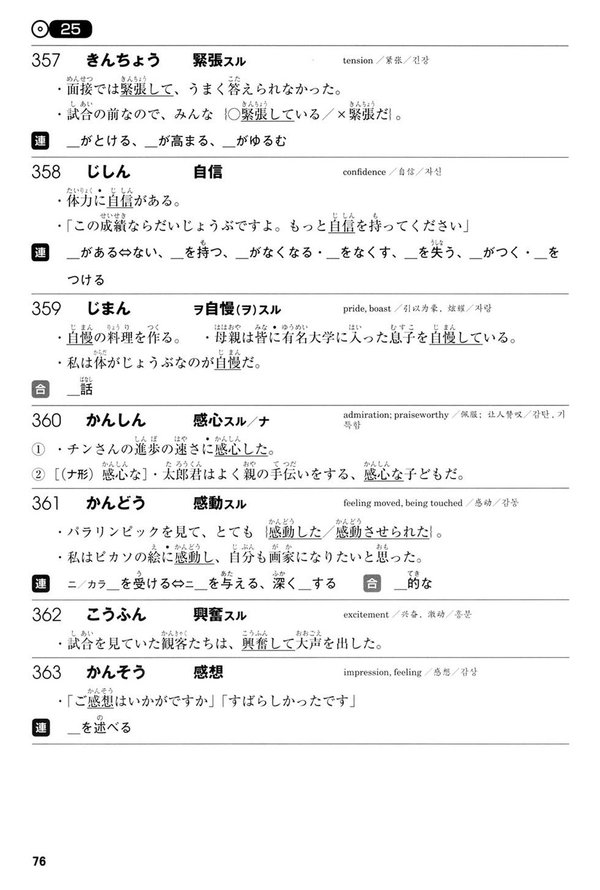 日本语能力试験N3レベルの880语を、品词・意味别に分类。语汇力をチェックできる问题を多数収録(総问题数1053问)。実际に使えるようになるためにコロケーション(连语)を重视。合成语・类义语・対义语・関连语などの情报も充実。コラムではグループごとの语汇をまとめて整理。 日本国内・海外で7月と12月に行われる日本语能力试験。日本语の能力を客観的に测るテストとして、全世界で活用されています。 本书は、そのN3レベルの主要语汇880语を品词别に整理した本です。各语汇の意味は英语・中国语・韩国语の3カ国语で并记。 実际にその语汇を「使える」ようになるためにコロケーション(连语)を重视。さらに合成语・类义语・対义语・関连语などの情报を充実させました。 意味ごとに细かく例文を入れてあり、N3レベルで必要な语汇を総合的にマスターできるようになっています。 语汇の意味と形を覚えたら、ユニットごとの练习问题にチャレンジ。さまざまな形式の问题を解くことで、重要语汇を彻底してマスターしましょう。付属CDが付いていますので、それを繰り返し闻くことで、闻く、书く、実际に口を动かして言ってみるなど五感をフルに活用して练习したり、音声だけを持ち歩いて闻くなど、さまざまな学习方法が可能です。また、巻末の総索引で覚えたかどうかのチェックができます。 本の最后には、本试験の语汇问题に対応した练习问题を9回分収録してありますので、実力チェックができます。 また、本のところどころに、テーマごとに语汇をまとめて覚えられるコラムも设けました。 本书は『耳から覚える日本语能力试験文法トレーニング』に続く新しいシリーズとして、今后、N2、N1レベルを出版する予定です。 本书を使って、本试験で着実に得点できる実力を养成してください。 ●対象レベル:日本语初中级 ●CD1枚付き CD収録分数:76分 収録言语:日本语