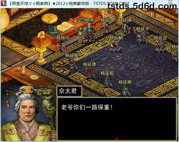 这个游戏做得太好了,以前只玩过吞食天地2,没想到杨家将也这么好耍,尤其是对话部分,很感动。我正玩到金沙滩那里,大郎杨延平替主赴难的时候,对杨继业说:“瓦罐不离井口破,将军难免阵前亡,您的儿媳都深明大义,我娘乃巾帼英雄,她爱自己的儿子,更爱千家万户的儿子”。感动得一塌糊涂