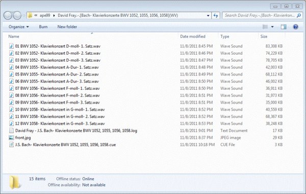 : 1. Keyboard Concerto In D Minor, BWV1052: I. Allegro 2. Keyboard Concerto In D Minor, BWV1052: II. Adagio 3. Keyboard Concerto In D Minor, BWV1052: III. Allegro 4. Keyboard Concerto In A BWV1055: I. Allegro 5. Keyboard Concerto In A BWV1055: II. Larghetto 6. Keyboard Concerto In A BWV1055: III. Allegro Ma Non Tanto 7. Keyboard Concerto In F Minor, BWV 1056: I Allegro 8. Keyboard Concerto In F Minor, BWV 1056: II Adagio 9. Keyboard Concerto In F Minor, BWV 1056: III Presto 10. Keyboard Concerto In G Minor, BWV 1058: I Allegro 11. Keyboard Concerto In G Minor, BWV 1058: II Andante 12. Keyboard Concerto In G Minor, BWV 1058: III Allegro Assai