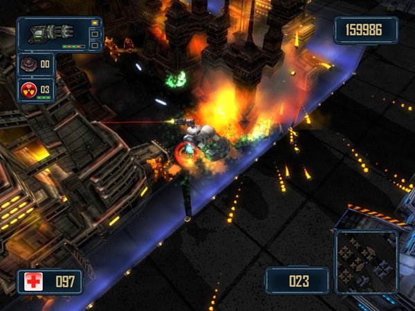 操作方向: 键盘方向键控制移动,鼠标左键射击,右键炸弹,空格键向四周扫射.过关后到指定区域按回车键进入下一关.ESC键菜单.
