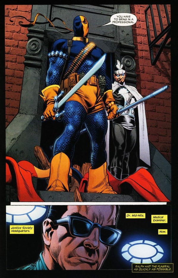 Ralph Dibny(Elongated Man)的妻子Sue Dibny被杀,一众英雄开始调查谁是凶手,其中有人怀疑是Doctor Light所为.那是因为一件没太多人知道的事件:多年前Doctor Light曾闯入正义联盟JLA卫星总部,强暴了Sue Dibny.当英雄赶回来把他捉住,Doctor Light曾扬言日后他会再回来找Sue,再来找其他英雄们的家人.有七个人留下来处理Doctor Light,其中包括Captain Atom, Black Canary, Hawkman, Flash(Barry Allen), Green Lantern(Hal Jordan), Green Arrow和Zatanna.有些人认为要把Doctor Light洗脑,好让他不会再作恶.但这件事绝不能让Batman或Superman知道,因为他们绝不会允许这样做.