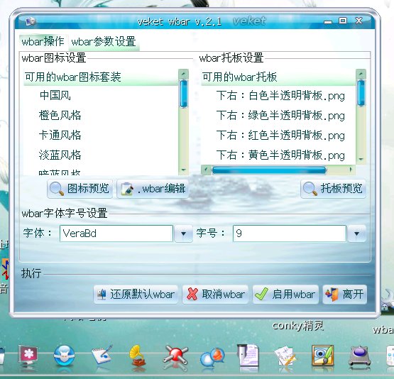 veket-wbar精灵2.1版本(新版功能更强可以调整的参数更多,由于很多人不习惯修改文件来调整设置,所以Perryfa写了这个小程序,方便大家调整各种参数。)