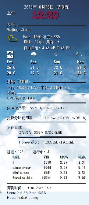 conkyrc小仓库:一个编辑和保存conky的配置文件的小程序(conky是一个很好玩的程序,而网上有很多各种有趣的配置conky文件,而这个小仓库是方便大家收集和整理及编辑各种conky的配置文件的,还可以很方便的启动各个配置文件查看效果,更换默认启动的配置也非常的方便,很方便的小程序,推荐。)