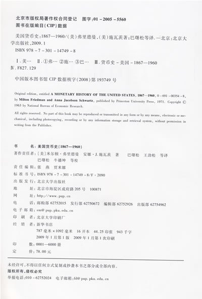 美国货币史 A Monetary History Of The United States 1867-1960 美 米尔顿•弗里德曼 Milton Fr