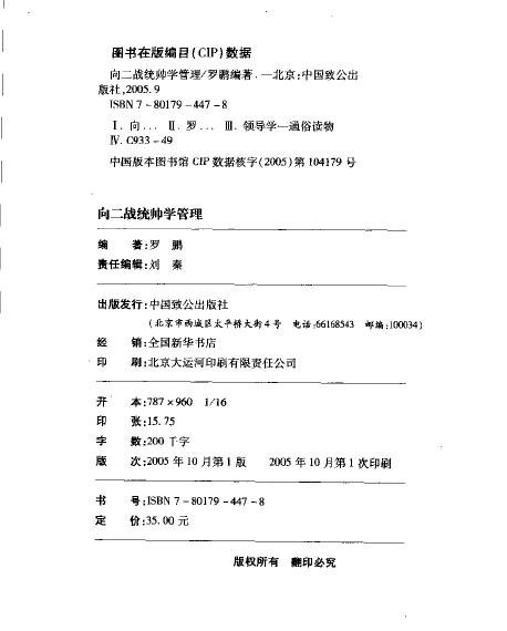 向二战统帅学管理 罗鹏 扫描版[PDF]