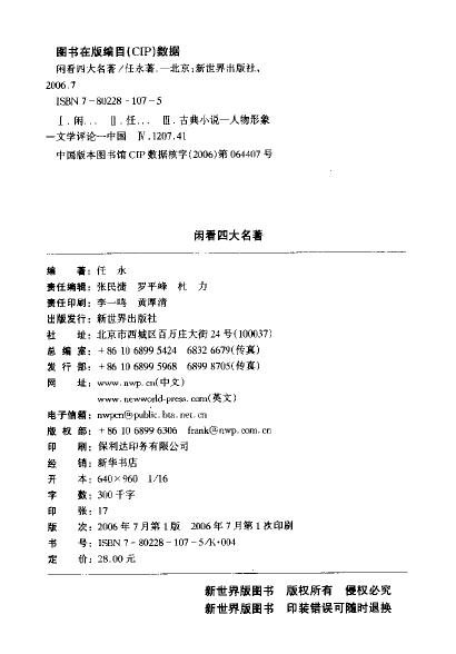 闲看四大名著 任永 扫描版[PDF]