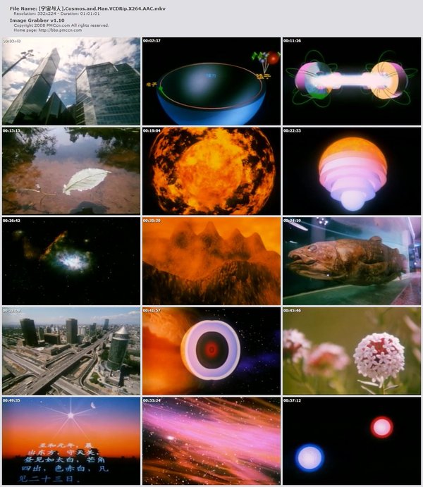 如果你对音视频品质无要求,亦可下载下面这个VCDRip视频,视频源来源于《宇宙与人》原版VCD镜像[Bin],时长61mins,上述HDTVRip内容稍有遗漏:
