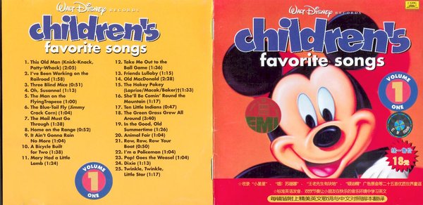 “两只老虎”、“ABC歌”、“哦!苏珊娜”、“小小世界”……六十多年来迪斯尼的欢乐王国伴随着无数的大小朋友度过了温馨难忘的童年。此次迪斯尼所企划推出的“最爱儿歌系列1~4辑”一共收录了100首童谣,不论是呀呀学语的小宝宝或是已届学龄的儿童都非常适合。标准清晰的英语发音、欢欣节奏让小朋友在快乐的音乐环境中学习英文。