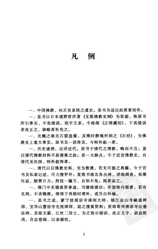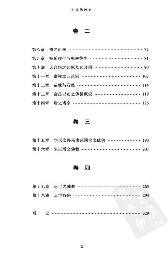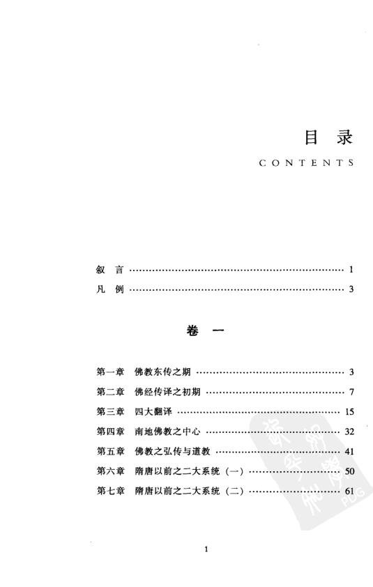 : 叙言 凡例 卷一 第一章 佛教东传之期 第二章 佛经传译之初期 第三章 四大翻译 第四章 南地佛教之中心 第五章 佛教之弘传与道教 第六章 隋唐以前之二大系统(一) 第七章 隋唐以前之二大系统(二) 卷二 第八章 禅之由来 第九章 极乐往生与兜率往生 第十章 天台宗之起原及其开创 第十一章 嘉祥之三论宗 第十二章 造像与石经 第十三章 会昌以前之佛教概说 第十四章 唐之诸宗 卷三 第十五章 华天之再兴唐武周世之破佛 第十六章 宋以后之佛教 卷四 第十七章 近世之佛教 第十八章 近世各宗 后记