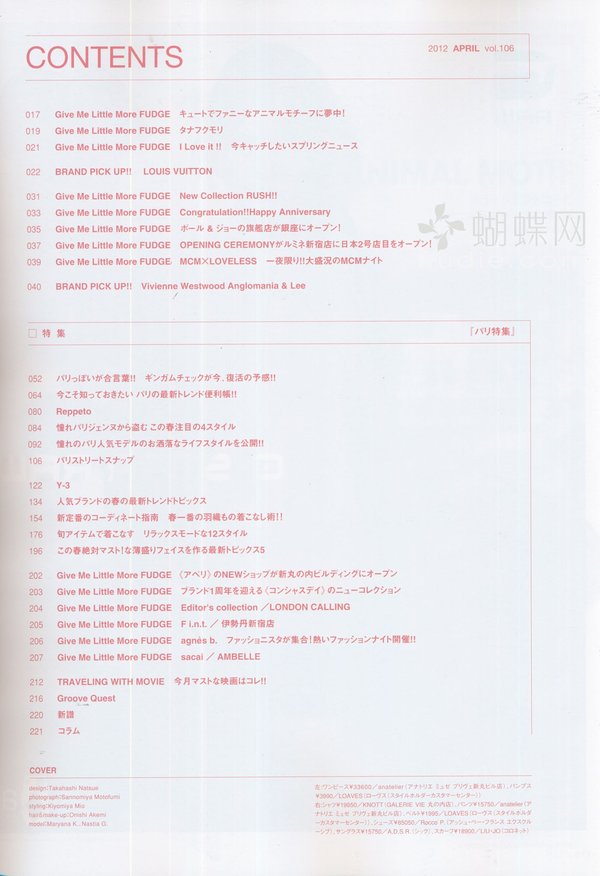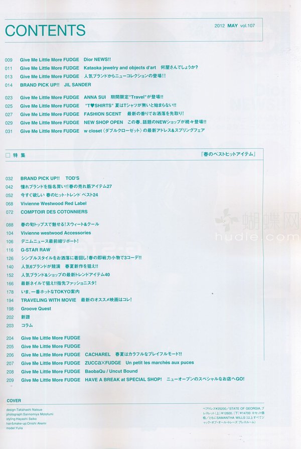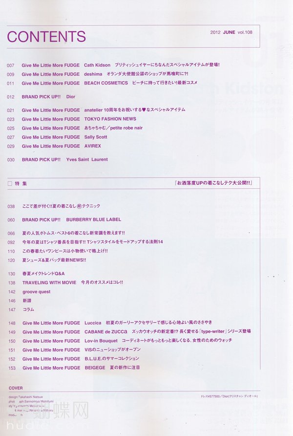 《Fudge》日本经典畅销的时尚女性杂志。它的欧美浪漫田园风,从时尚女装到高跟皮鞋,从精美彩妆到精致女包,配五彩缤纷的女性饰品。相信爱美的你一定会痴迷于该本精美的时尚杂志!