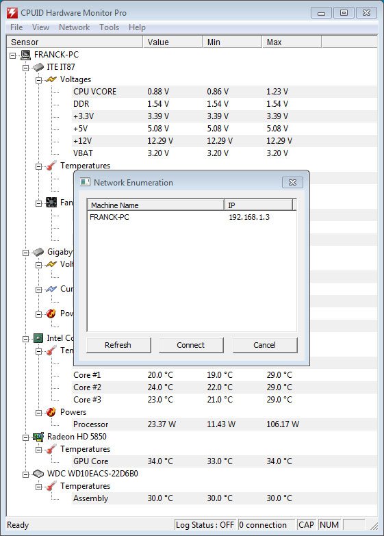 软件类型:软件>系统工具 软件性质:破解软件 应用平台:Windows 操作系统:Winall 问题反馈:http://www.cpuid.com/contact.html 网站链接:http://www.cpuid.com/softwares/hwmonitor-pro.html#top 软件介绍: CPUID HWMonitor是一款类似于CPU-Z的小工具,实时监测CPU的电压、温度、风扇转速等项目。其工作的原理是通过传感器可以实时监测CPU的电压、温度、风扇转速,内存电压,主板南北桥温度、硬盘温度,显卡温度等。 HWMonitor是一种硬件读取PC系统健康的主要传感器:温度,电压,风扇转速监测中的应用。 HWMonitor临在其经典相比,增加了以下功能: 远程监控 观看一个或几个遥远的电脑感应器,通过一个简单的TCP / IP连接。 图形发生器 保存监测数据,并生成位图文件的记录图。 改进的界面 在系统托盘中的传感器,可编辑的传感器标签