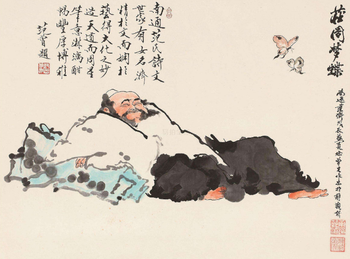 庄周梦见自己变成蝴蝶,十分逼真的一只蝴蝶。他感到极为惬意。而忘了自己原本是庄周。突然间醒过来,才忽然想到原来自己是庄周。不知是庄周梦中变成蝴蝶呢,还是蝴蝶梦中变成庄周?庄周与蝴蝶终于还是有区别的。这就是物与我的交变。
